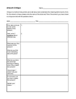 Read Online artwork critique forms Doc Open Library